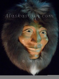 "Greyling" Carved bone on carved wood base. 11 inches.